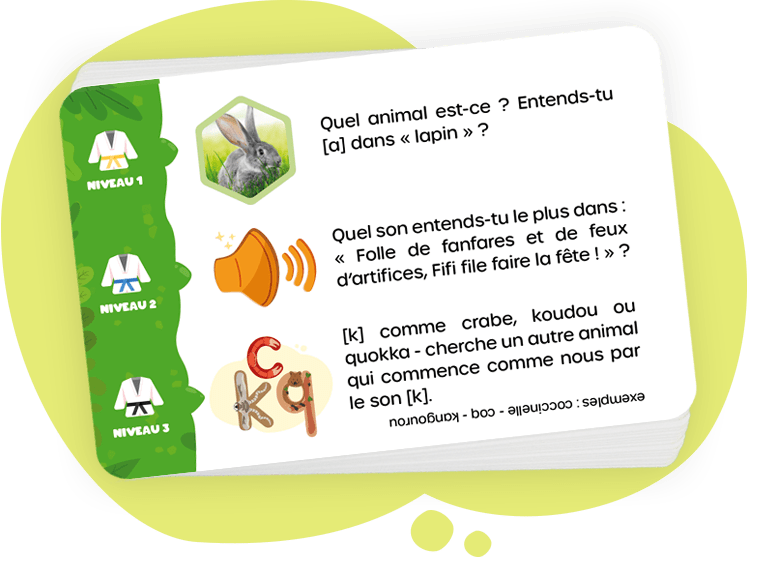 • 32 cartes questions « sons » (3 niveaux par carte)