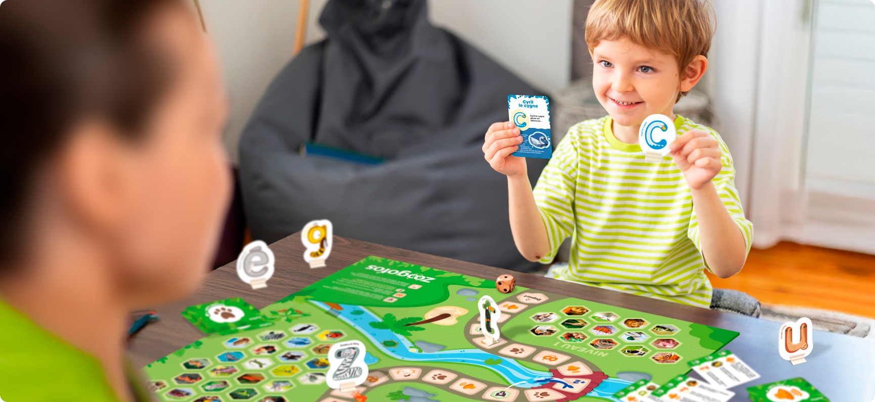 En seulement quelques parties en famille avec les Zoogotos, l’enfant fait, sans s’en rendre compte, ni avoir l’impression de « travailler », un grand pas vers la lecture !